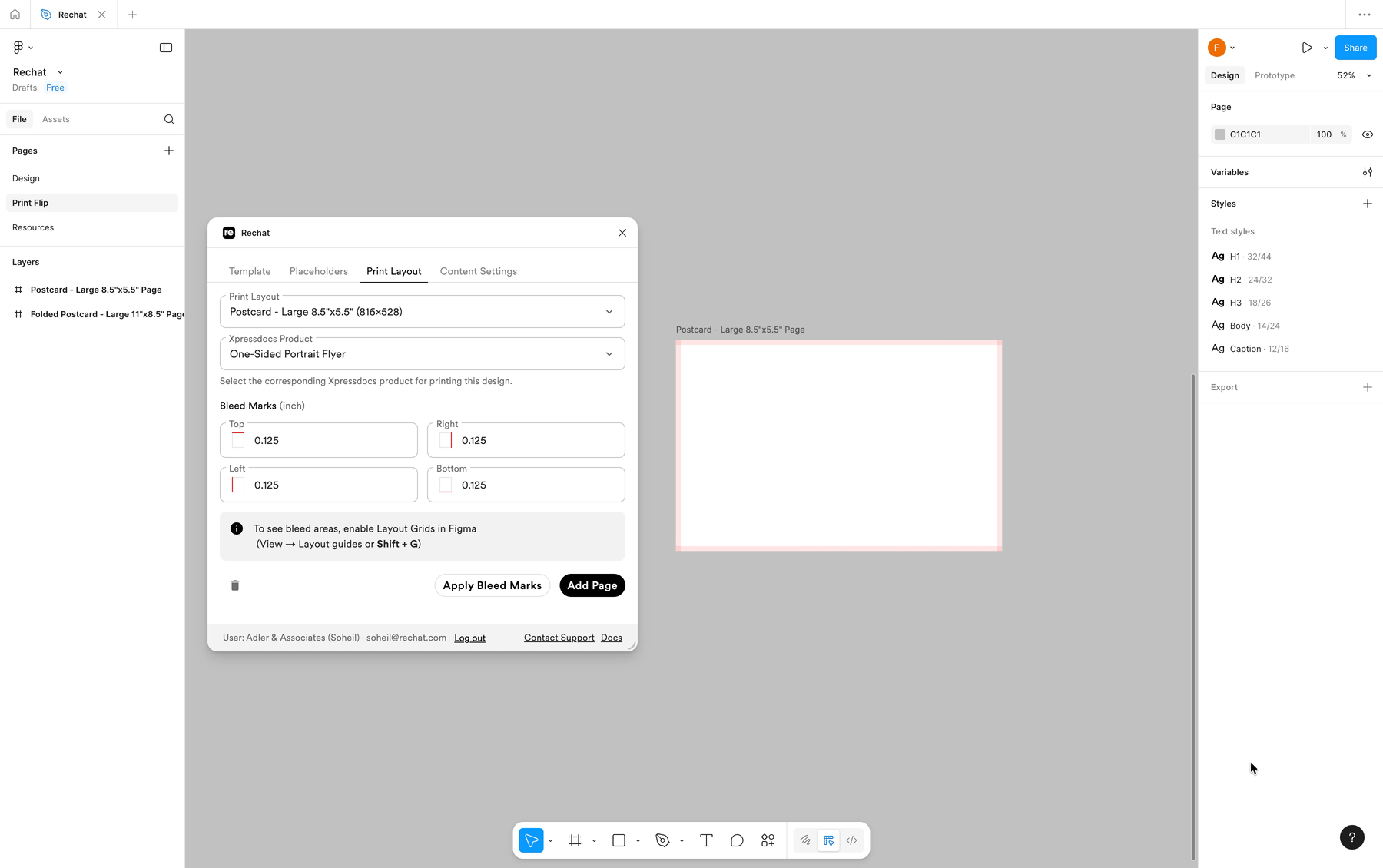 This section describes how a template is set up for print through Rechat’s Figma plugin and how it is associated with Xpressdocs products for production.