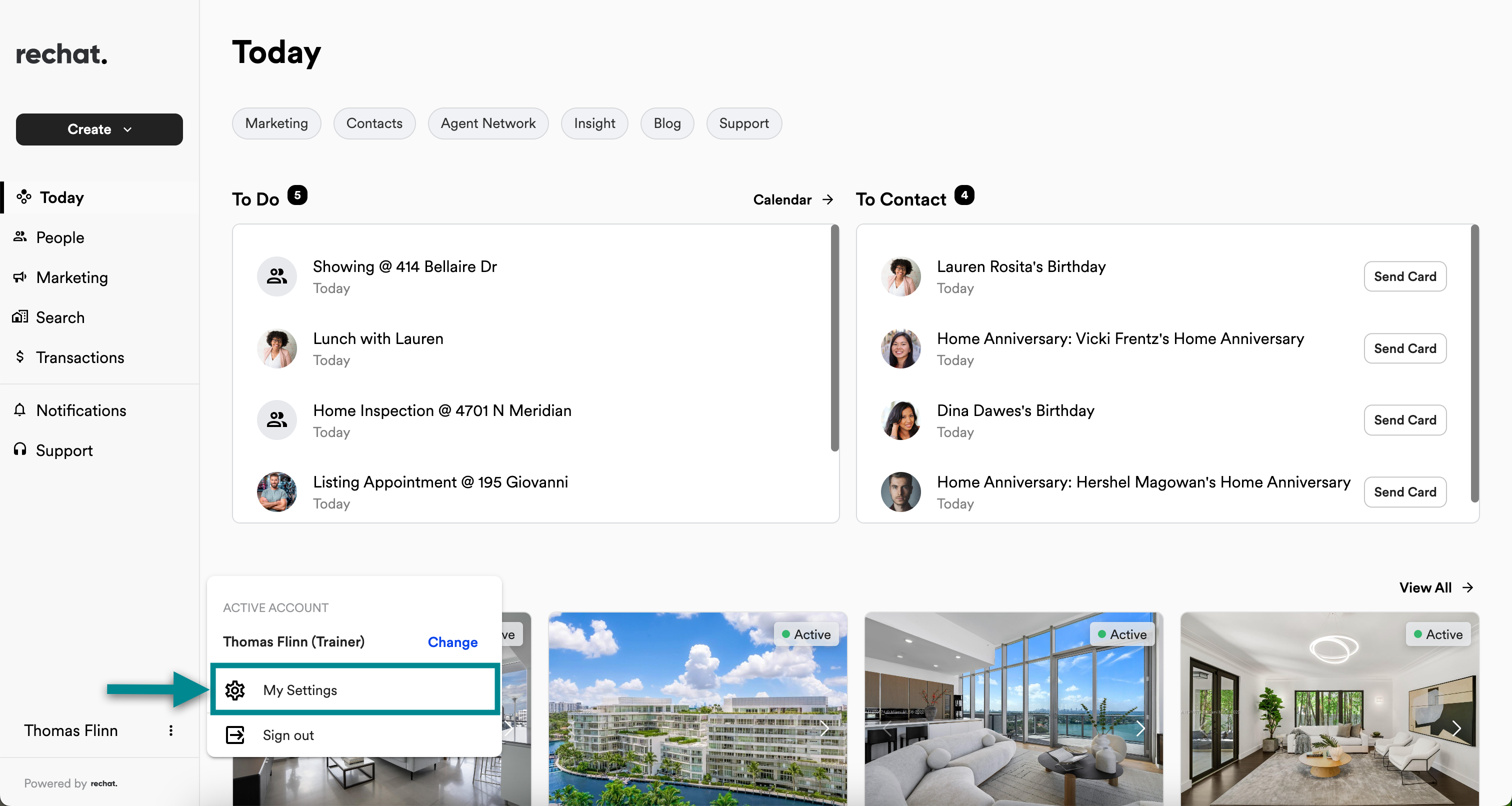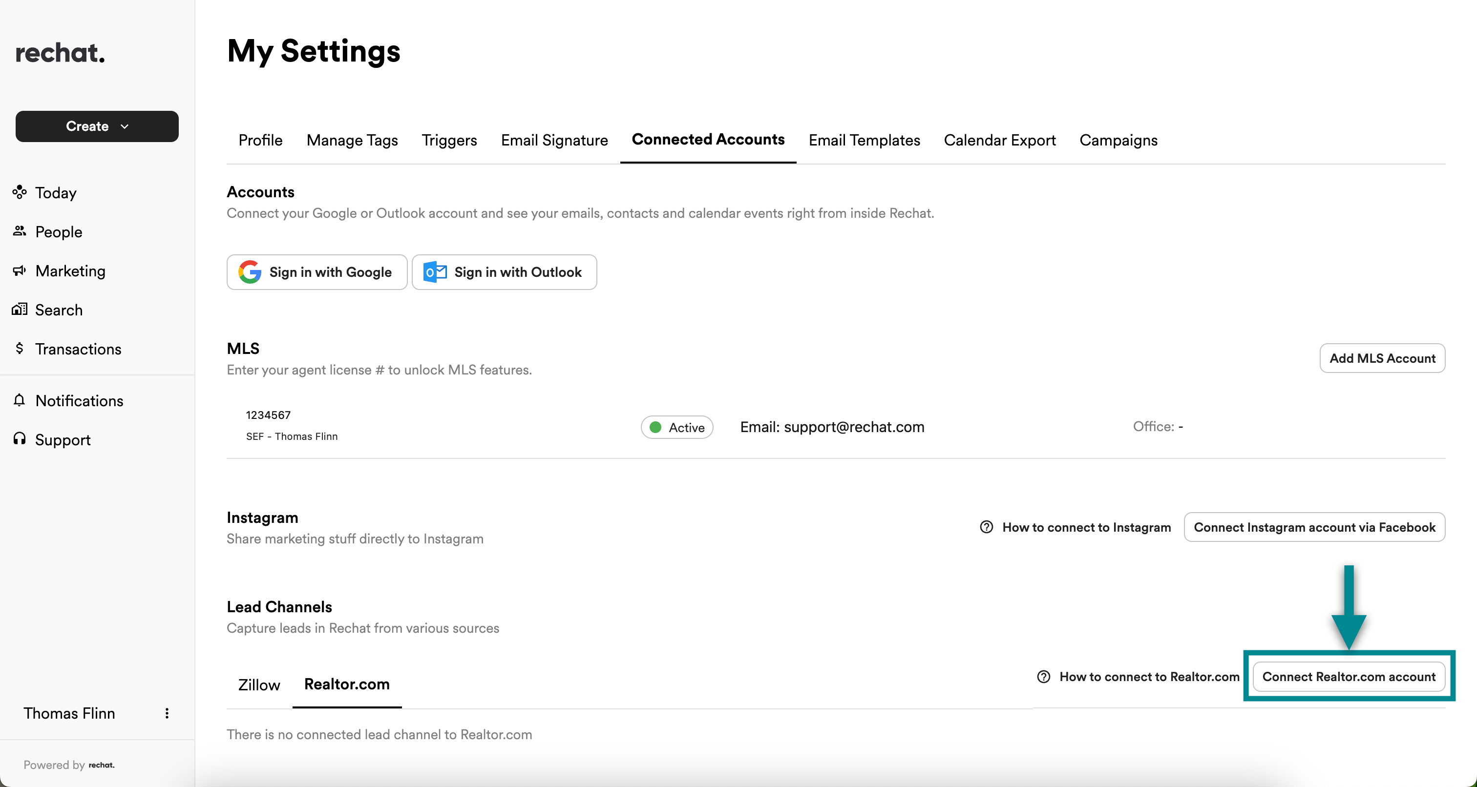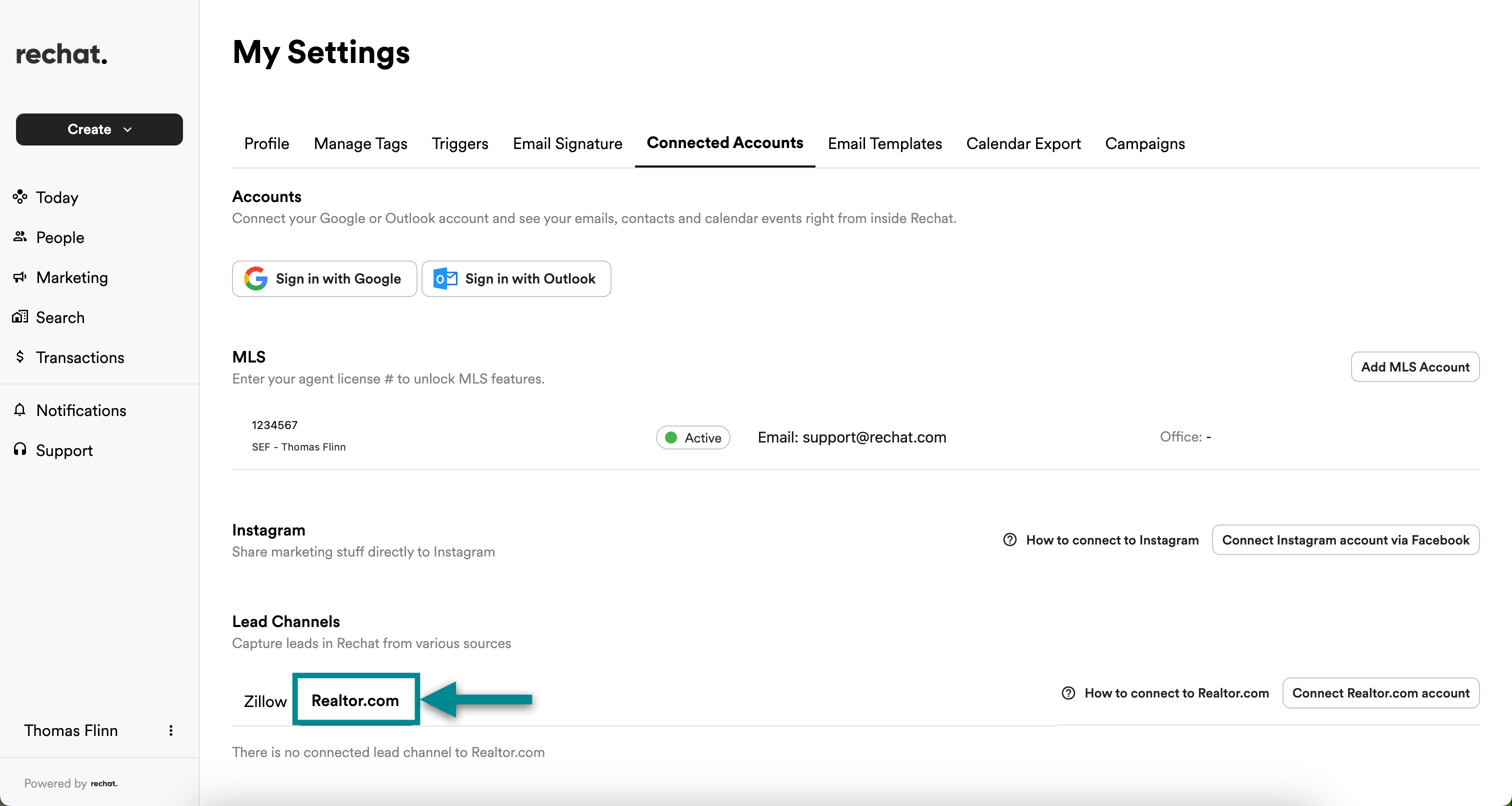 Realtor.com Connections℠ Plus subscribers can connect Rechat and Realtor.com so leads flow seamlessly into your contacts, allowing you to follow up more efficiently.