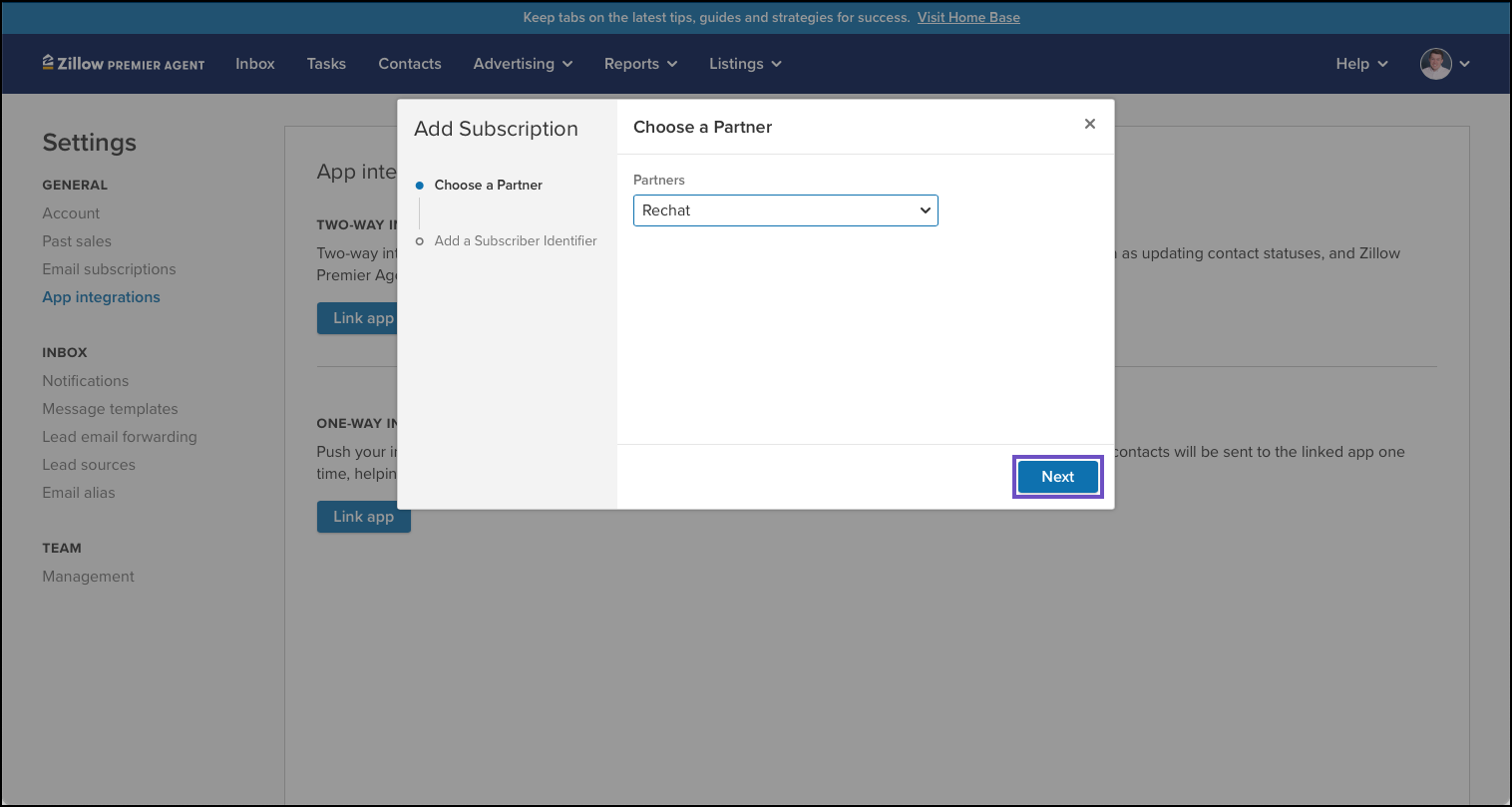 #### Congratulations! You have successfully connected Zillow Leads to Rechat!