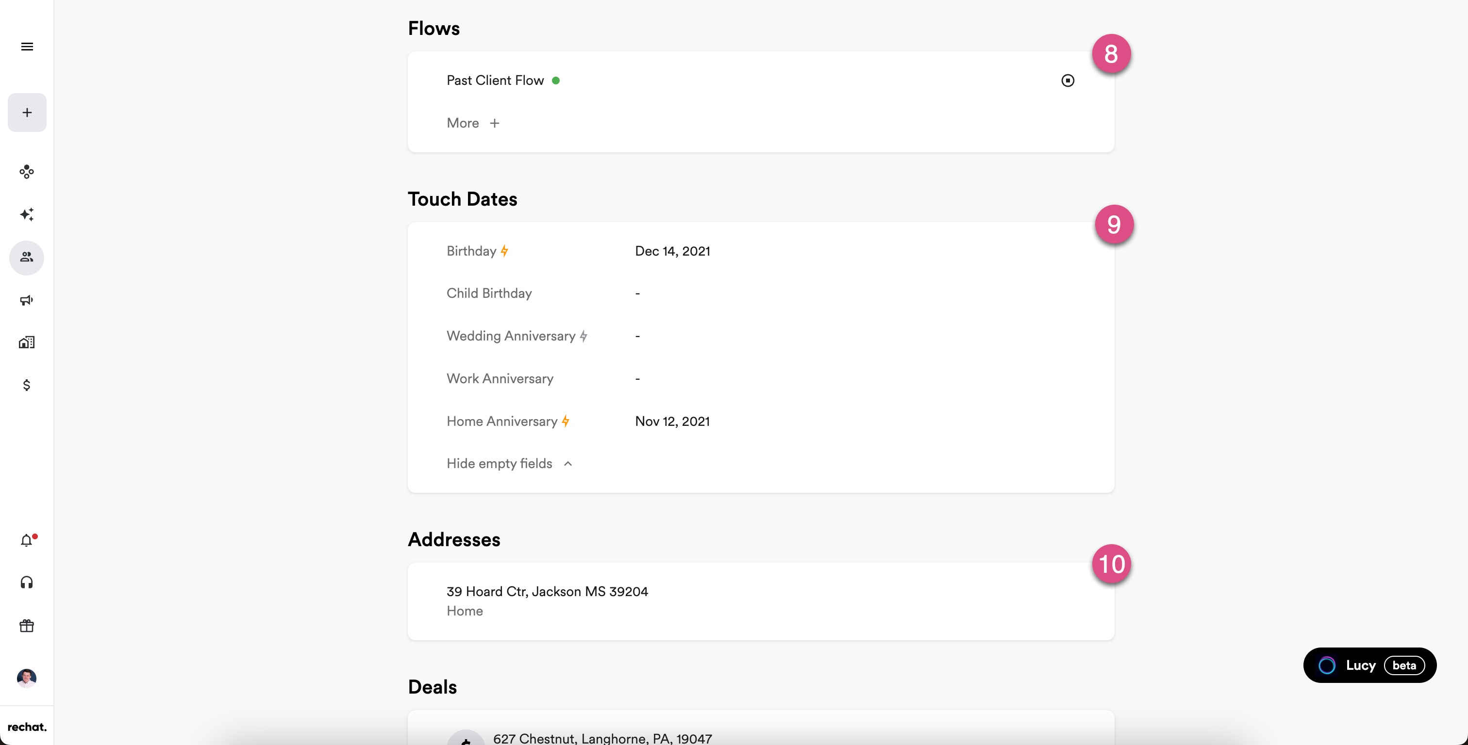 Contact Profiles provide a comprehensive view of your relationship with each client and includes everything from personal details to key milestones that help you maintain a meaningful connection.