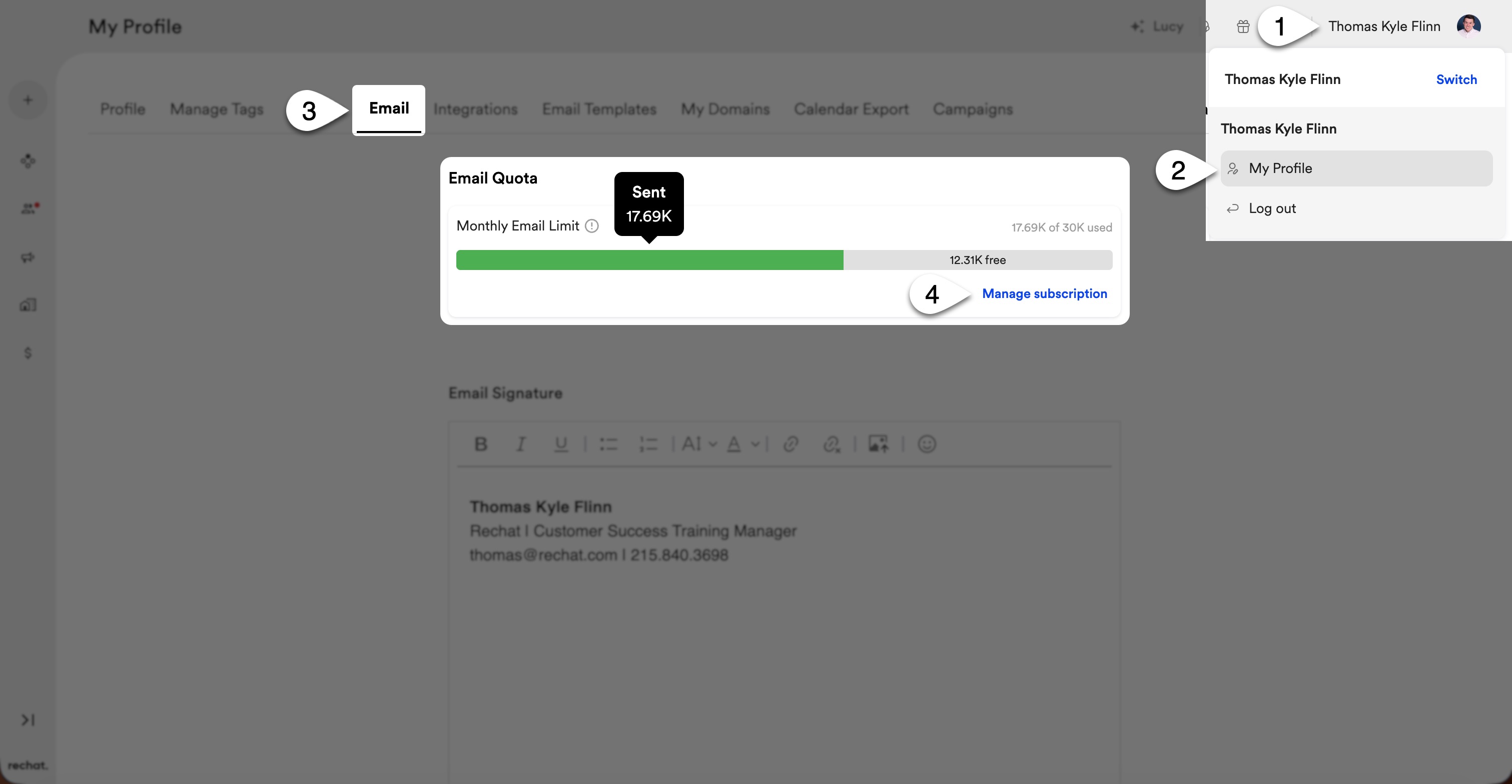 Rechat makes it simple to see exactly how many emails you've sent month-to-date, as well as how many emails you have remaining for the month.